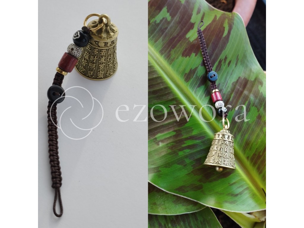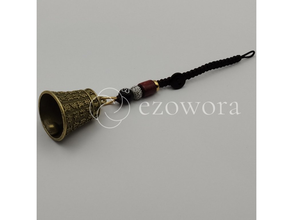 - Malý kovový zvonček/prívesok, často s rytinou mantry.